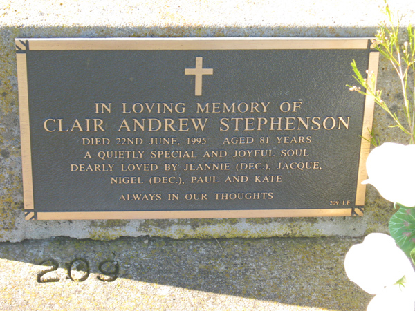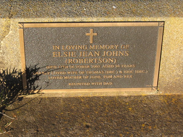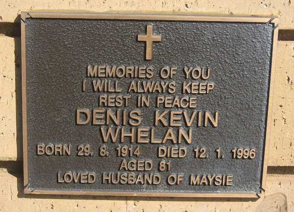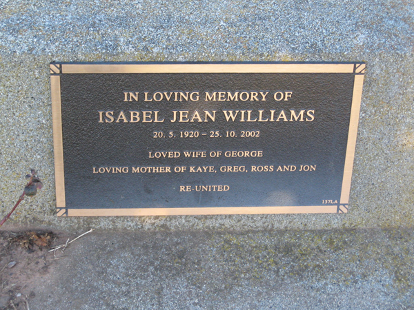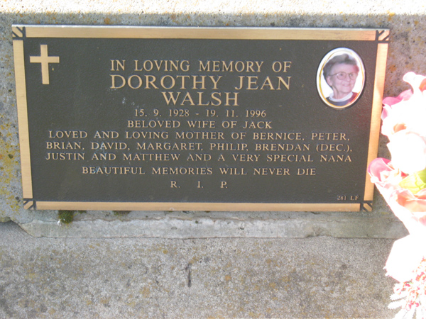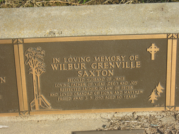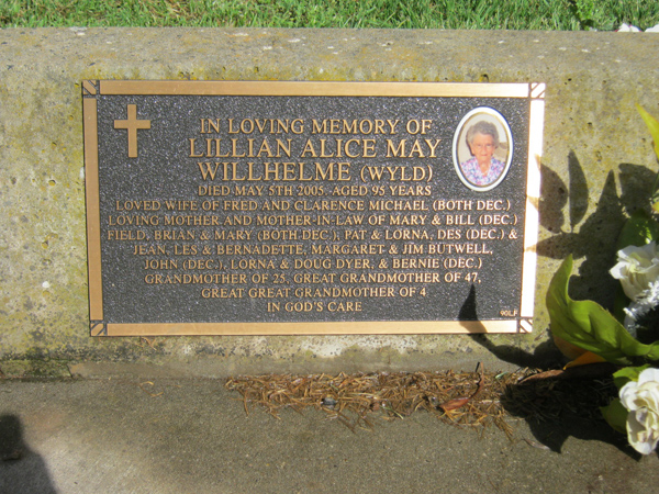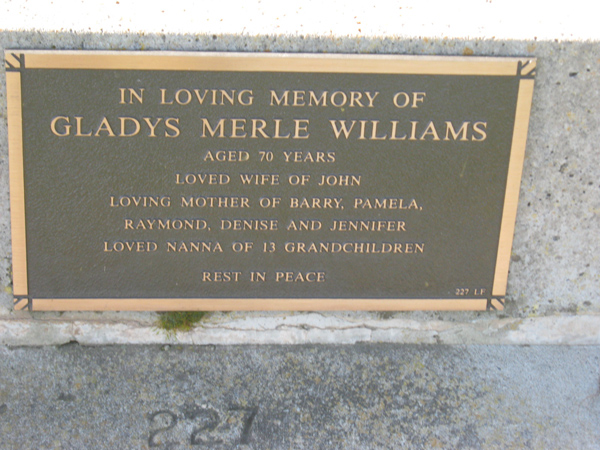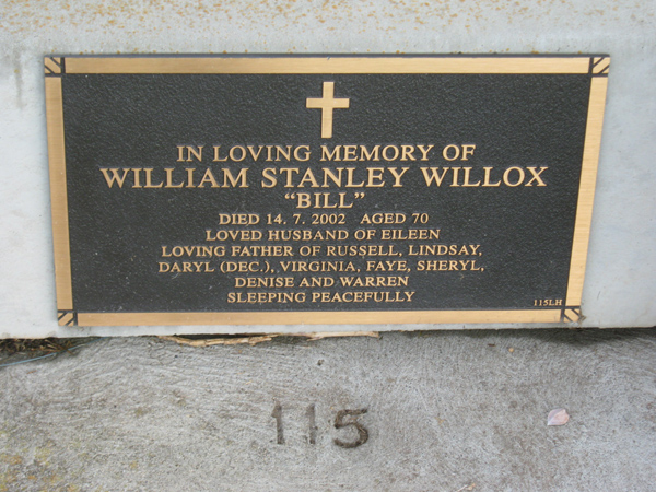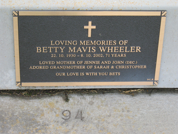 | WILSON | John Samuel | photo | 2001 | 87 | Doreen | Lawn F | ||
