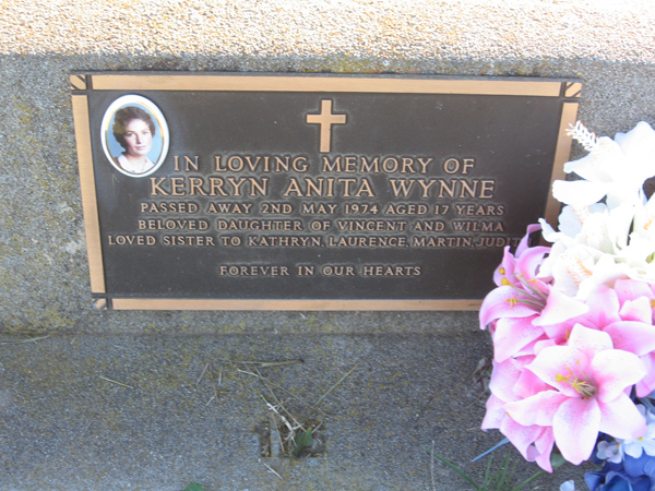 | WYNNE | Kerryn Anita | photo | 1974 | 17 | daug/o Vincent & Wilma | Lawn A | ||