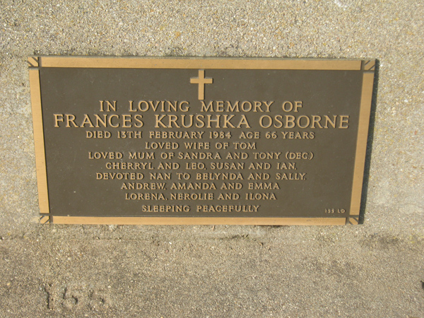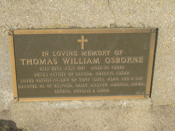 | OSBORNE | Thomas William | photo | 1987 | 79 | Frances K | Lawn D | ||