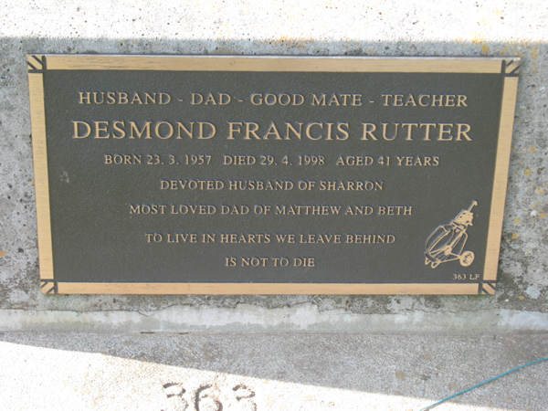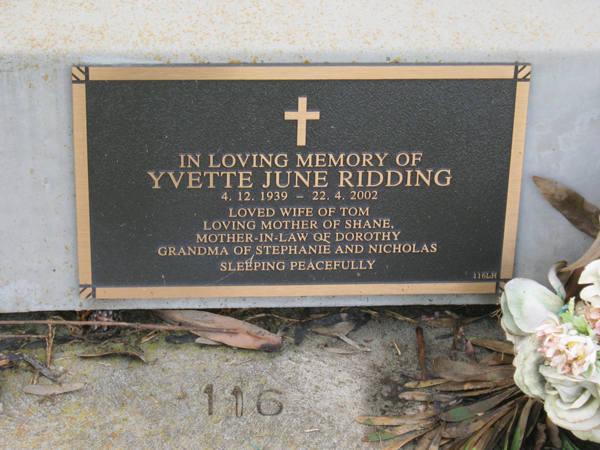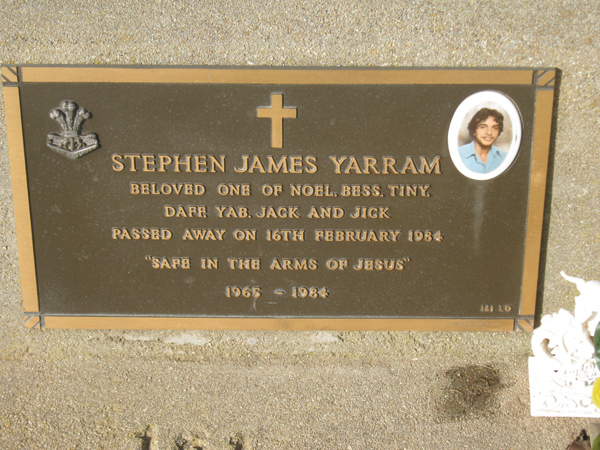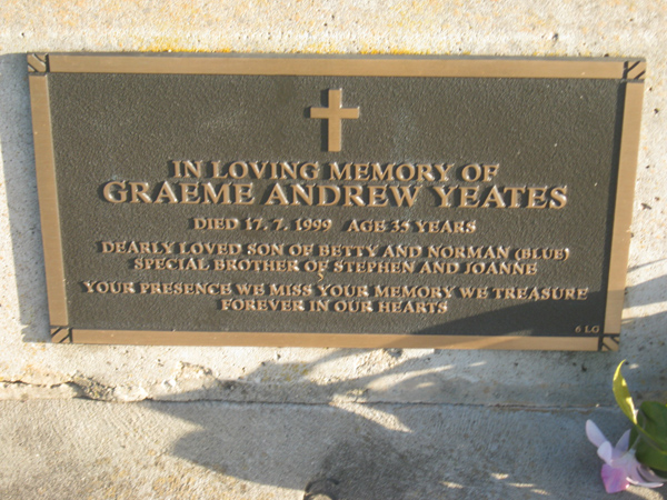 | YEATES | Graeme Andrew | photo | 1999 | 35 | son/o Betty & Norman | Lawn G | ||