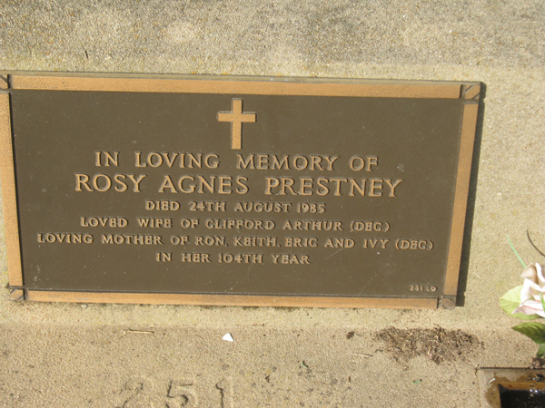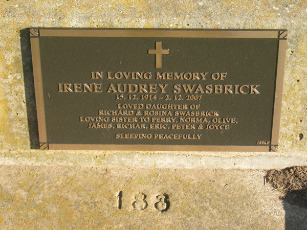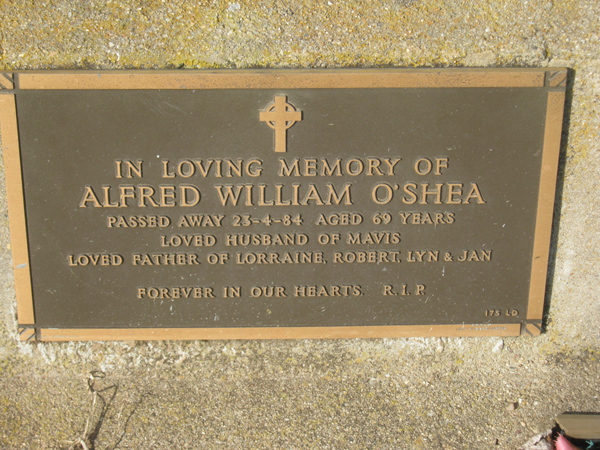 | O'SHEA | Alfred William | photo | 1984 | 69 | Evelyn | Lawn D | ||