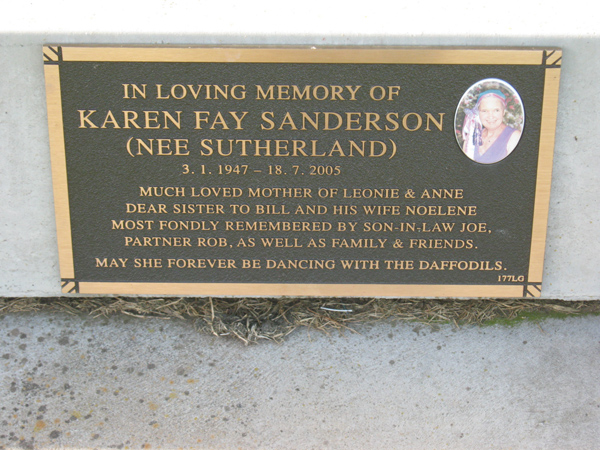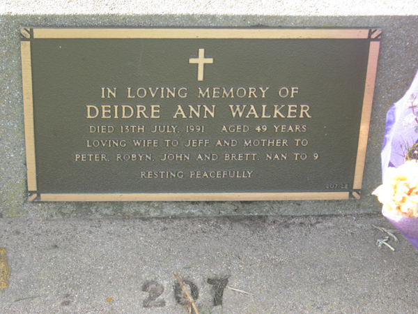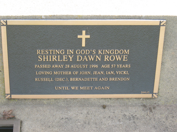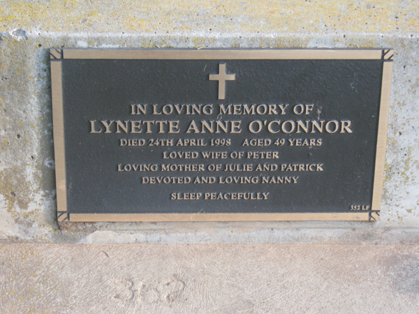 | O'CONNOR | Lynette Anne | photo | 1998 | 49 | Peter | Lawn F | ||