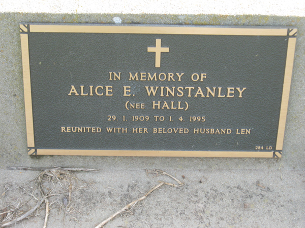 | WINSTANLEY | Alice E | photo | 1909 | 1995 | Leonard G | nee Hall | Lawn D | |