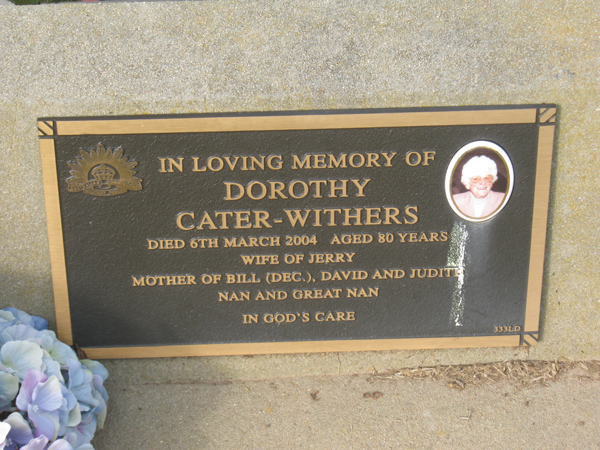 | WITHERS - CATER | Dorothy | photo | 1904 | 80 | Cecil | Army | Lawn D | |