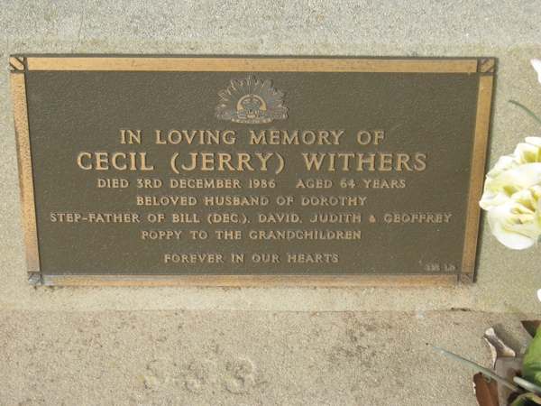 | WITHERS | Cecil "Jerry" | photo | 1986 | Dorothy | Army | Lawn D | ||