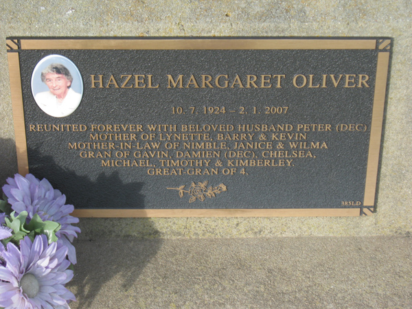| OLIVER | Hazel Margaret | photo | 1924 | 2007 | Peter J | Lawn D | ||