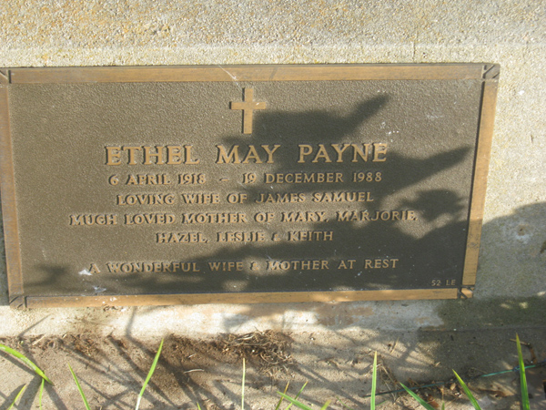 | PAYNE | Ethel May | photo | 1918 | 1988 | James S | Lawn E | ||