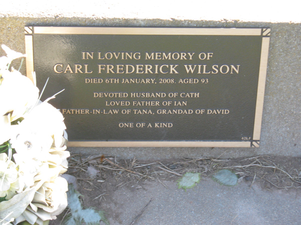 | WILSON | Carl Frederick | photo | 2008 | 93 | Catherine E | Lawn F | ||