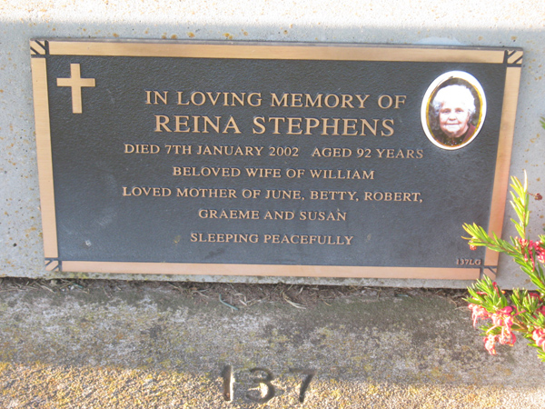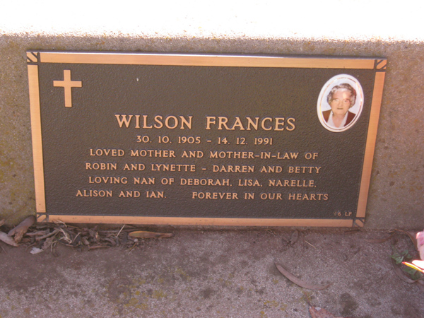| WILSON | Doreen | photo | 1998 | 82 | John S | Lawn F | ||