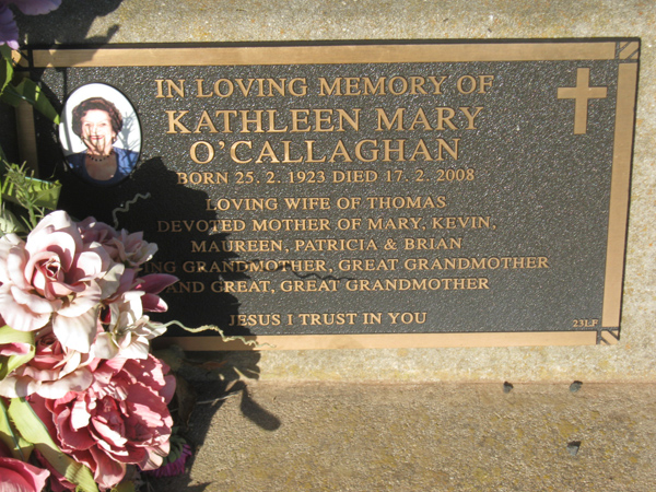| O'CALLAGHAN | Kathleen Mary | photo | 1923 | 2008 | Thomas V | Lawn F | ||