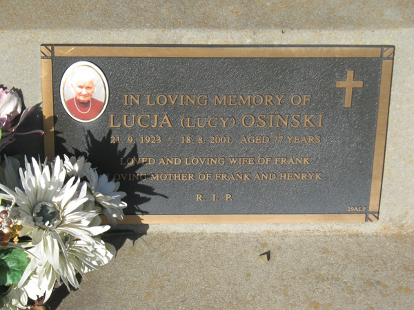 | OSINSKI | Lucja "Lucy" | photo | 1923 | 2001 | 77 | Franciszek | Lawn F | |