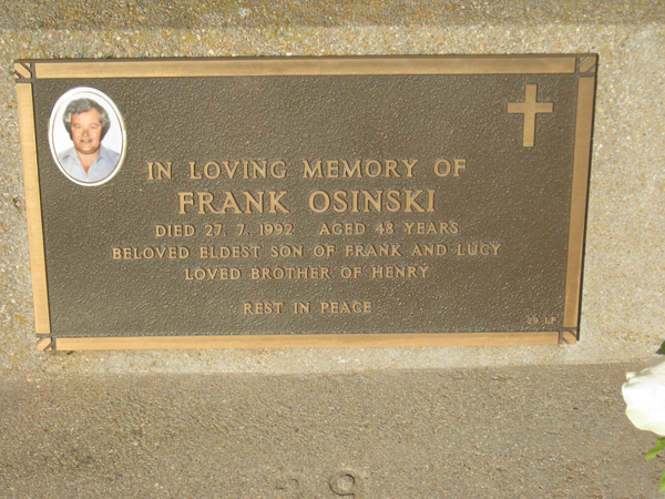 | OSINSKI | Frank | photo | 1992 | 48 | son/o Franciszek &Lucja | Lawn F | ||