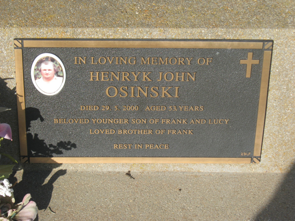 | OSINSKI | Henryk John | photo | 2000 | 53 | son/o Franciszek &Lucja | Lawn F | ||