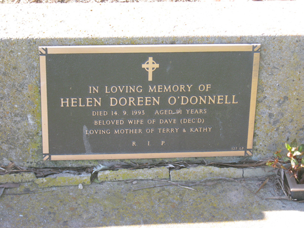 | O'DONNELL | Helen Doreen | photo | 1993 | 91 | Dave | Lawn F | ||