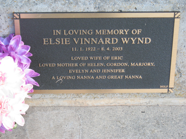 | WYND | Elsie Vinnard | photo | 1922 | 2003 | Eric G | Lawn F | ||