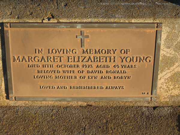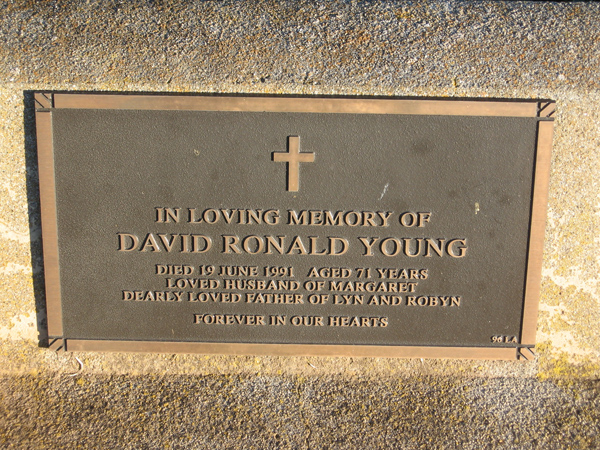 | YOUNG | David Ronald | photo | 1991 | 71 | Margaret E | Lawn A | ||