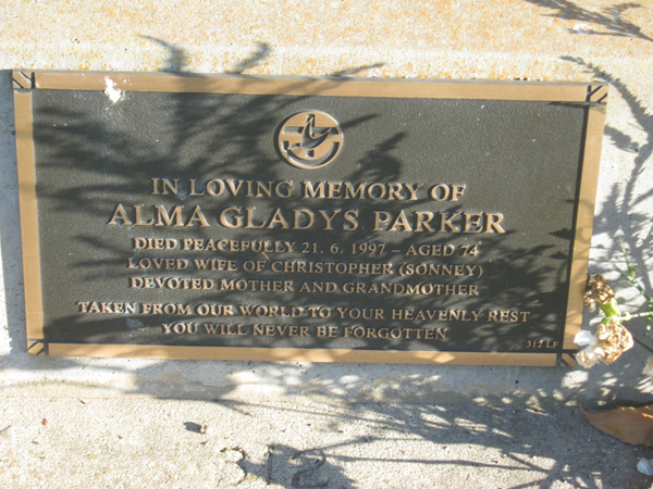 | PARKER | Alma Gladys | photo | 1997 | 74 | Christopher | Lawn F | ||