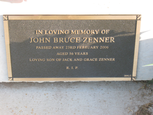 | ZENNER | John Bruce | photo | 2006 | 56 | son/o Jack & Grace | Lawn G | ||