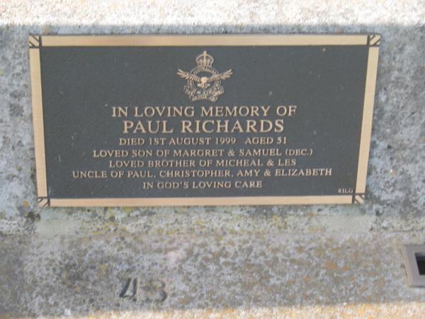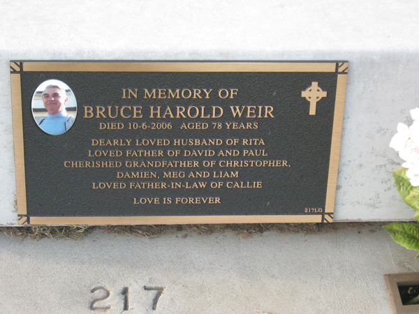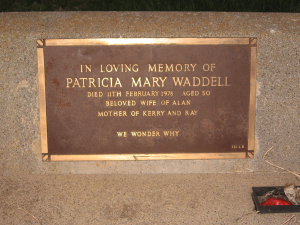 | WRIGHT | Peter Robert | photo | 1961 | 1992 | Judy | Lawn F | ||
