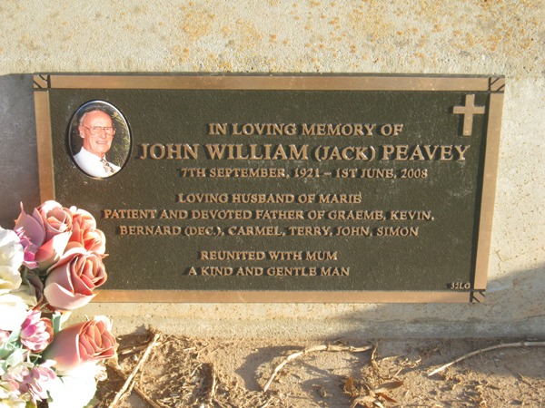| PEAVEY | John William | photo | 1921 | 2008 | Marie F | Lawn G | ||