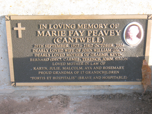 | PEAVEY | Marie Fay | photo | 1927 | 2004 | John W | nee Cantwell | Lawn G | |