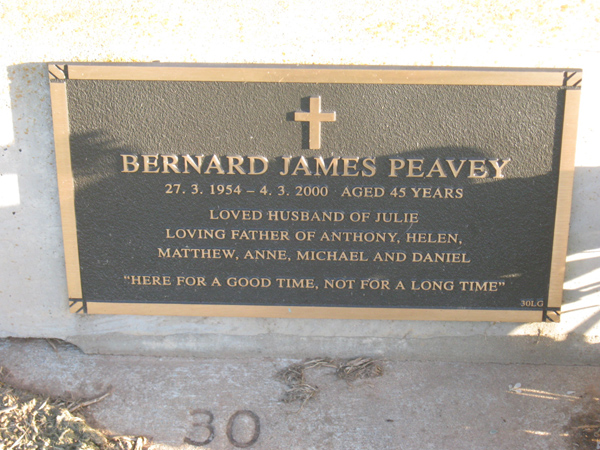 | PEAVEY | Bernard James | photo | 1954 | 2000 | 45 | Julie | son/o John W & Marie F | Lawn G |
