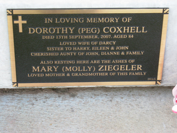 | ZIEGELER | Mary | photo | no dates | ashes with Dorothy Coxhell | Lawn G |