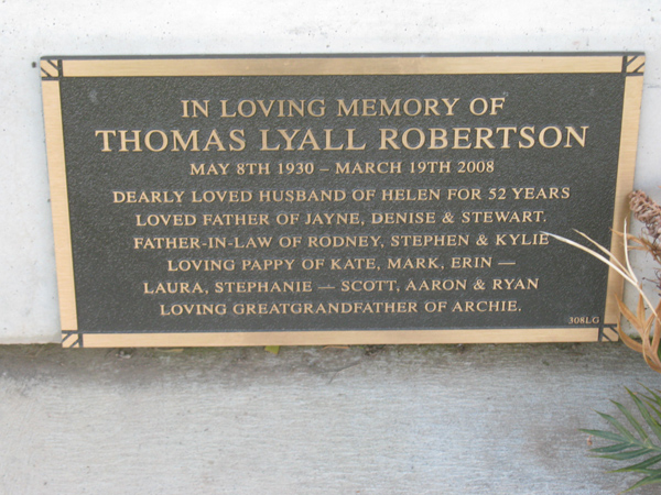 | WILSON | Robin Bernard | photo | 1938 | 2005 | Lynette | Lawn G | ||