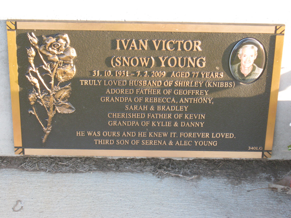 | YOUNG | Ivan Victor | photo | 1931 | 2009 | 77 | Shirley nee Knibbs | Lawn G | |
