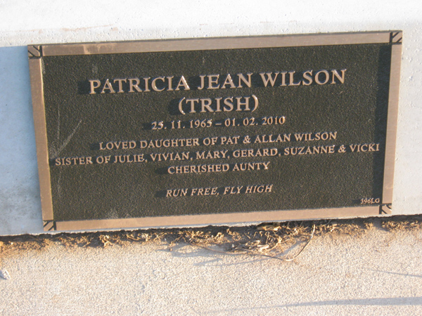 | WILSON | Patricia Jean | photo | 1965 | 2010 | daug/o Pat & Allan Wilson | Lawn G | ||
