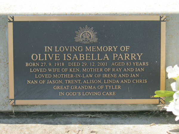 | PARRY | Olive Isabel | photo | 1918 | 2001 | 83 | Ken | Army | Lawn G |