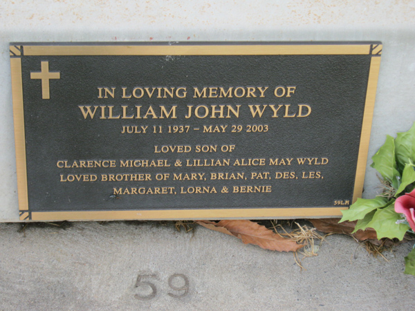 | WYLD | William John | photo | 1937 | 2003 | son/o Clarence M & Lillian A.M | Lawn H | ||