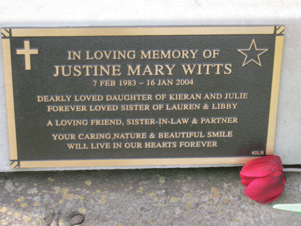 | WITTS | Justine Mary | photo | 1983 | 2004 | daug/o Kieran & Julie | Lawn H | ||