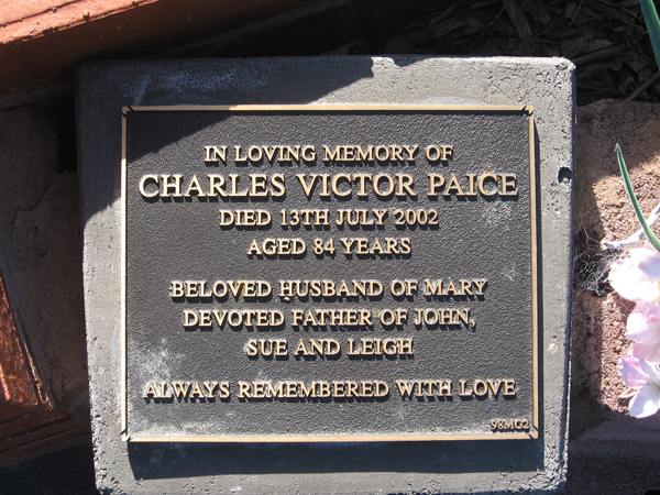 | PAICE | Charles Victor | photo | 2002 | 84 | Mary | M Garden | ||