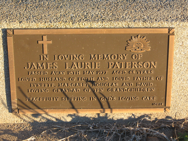 | PATERSON | James Laurie | photo | 1977 | 68 | Edith | Lawn B | ||