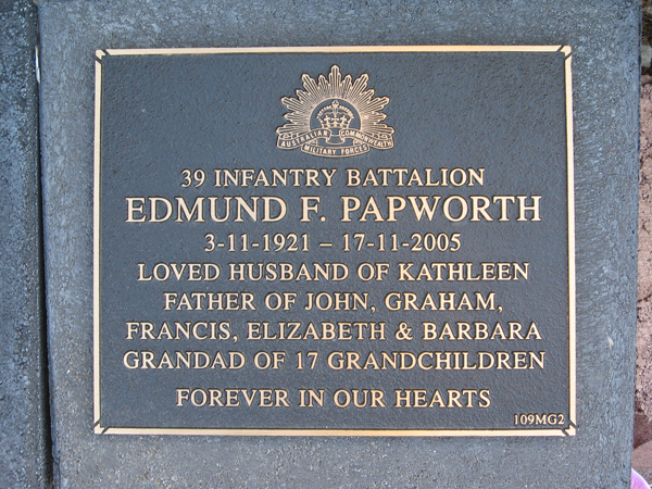 | PAPWORTH | Edmund F | photo | 2005 | Kathleen | Army | M Garden | ||