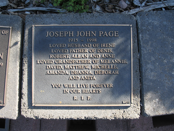 | PAGE | Joseph John | photo | 1915 | 1998 | Irene | M Garden | ||