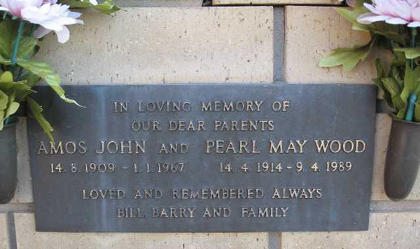 | WOOD | Amos John | photo | 1909 | 1967 | Pearl M | Niche | ||