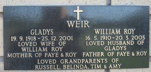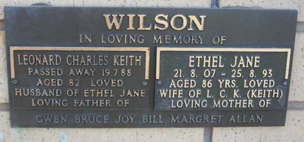 | WILSON | Leonard C.K | photo | 1988 | 82 | Ethel J | Niche | ||