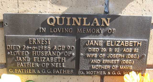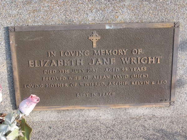 | WRIGHT | Elizabeth Jane | photo | 1987 | 93 | Allan D | Lawn C | ||