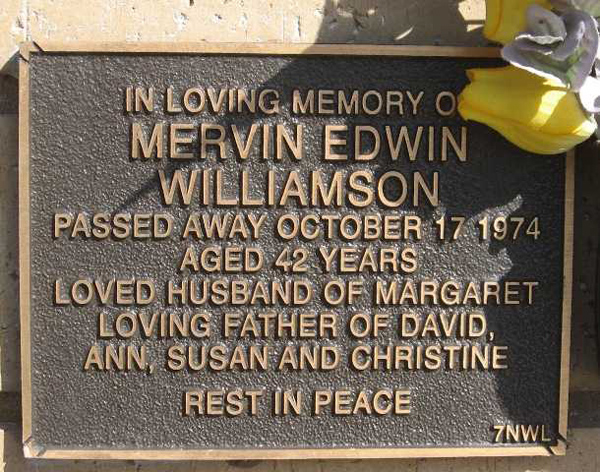 | WUILLEMIN | Dennis John | photo | 1984 | 34 | Edna | Lawn D | ||