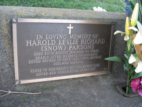 | PARSONS | Harold Leslie R | photo | 1975 | 60 | Lorraine E | Lawn B | ||