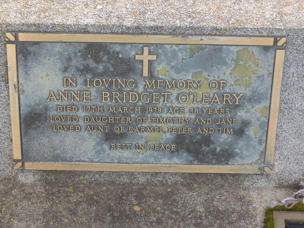 | O'LEARY | Anne Bridget | photo | 1979 | 86 | daug/o Timothy & Jane | Lawn C | ||