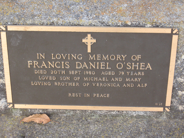 | O'SHEA | Francis Daniel | photo | 1980 | 79 | son/o Michael & Mary | Lawn C | ||