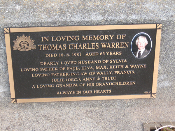 | O'CALLAGHAN | Thomas Victor | photo | 1920 | 1992 | Kathleen M | Lawn F | ||
