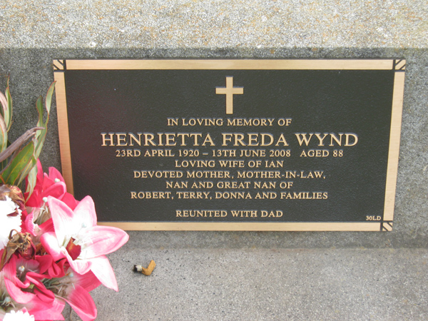 | WYND | Henrietta Freda | photo | 1920 | 2008 | 88 | Ian R | Lawn D | |
