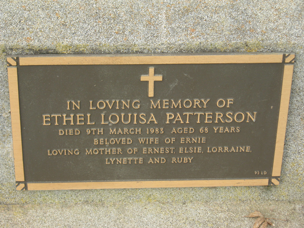 | PATTERSON | Ethel Louisa | photo | 1983 | 68 | Ernest E | Lawn D | ||