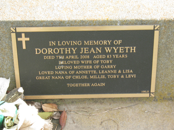 | WYETH | Edwin George "Toby" | photo | 1983 | 58 | Dorothy J | Lawn D | ||
