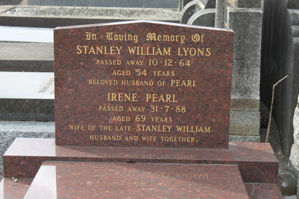 | photo | Lyons | Stanley William | 1964 | 54 | Irene Pearl | |||