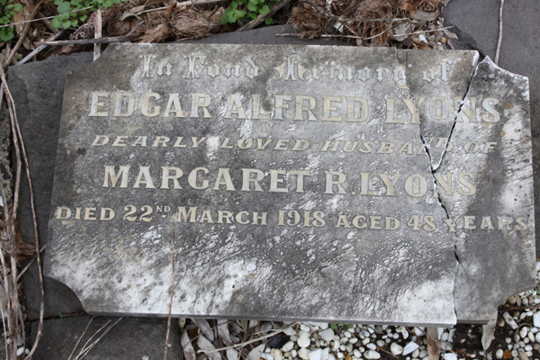 | photo | Lyons | Edgar Alfred | 1918 | 48 | Margaret R | |||